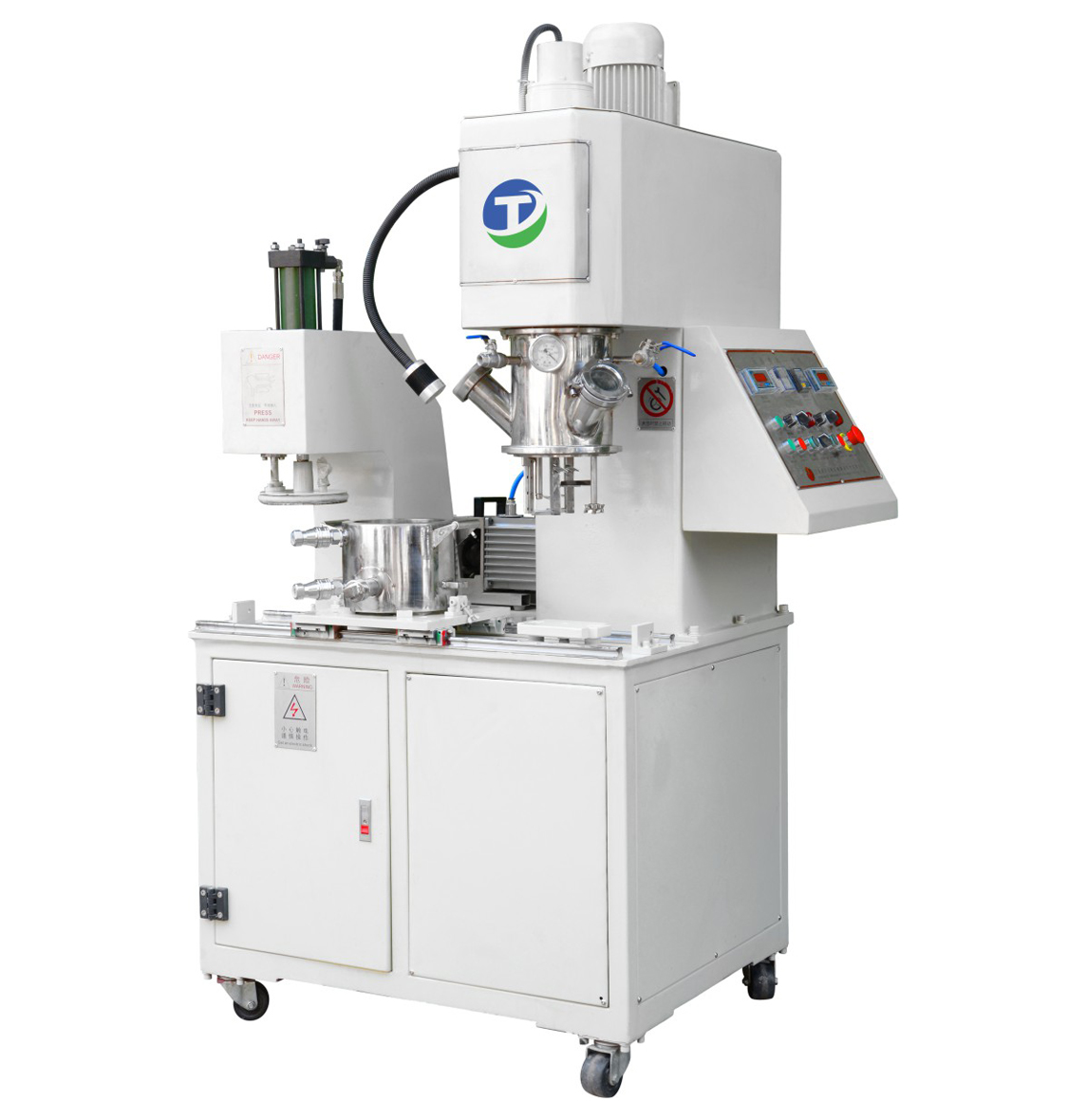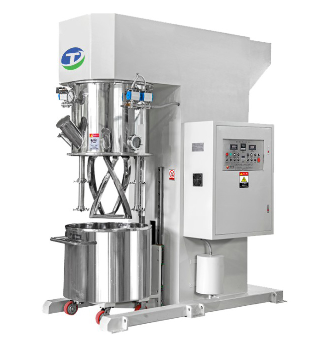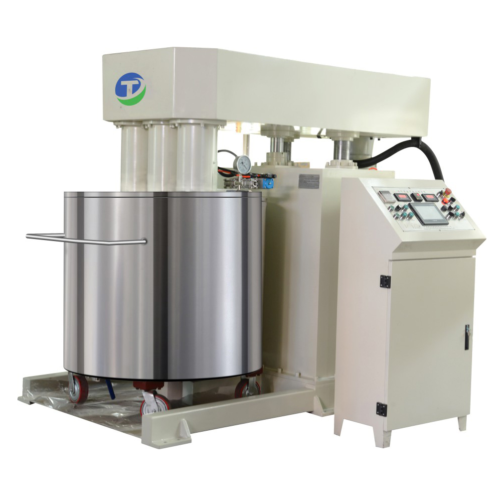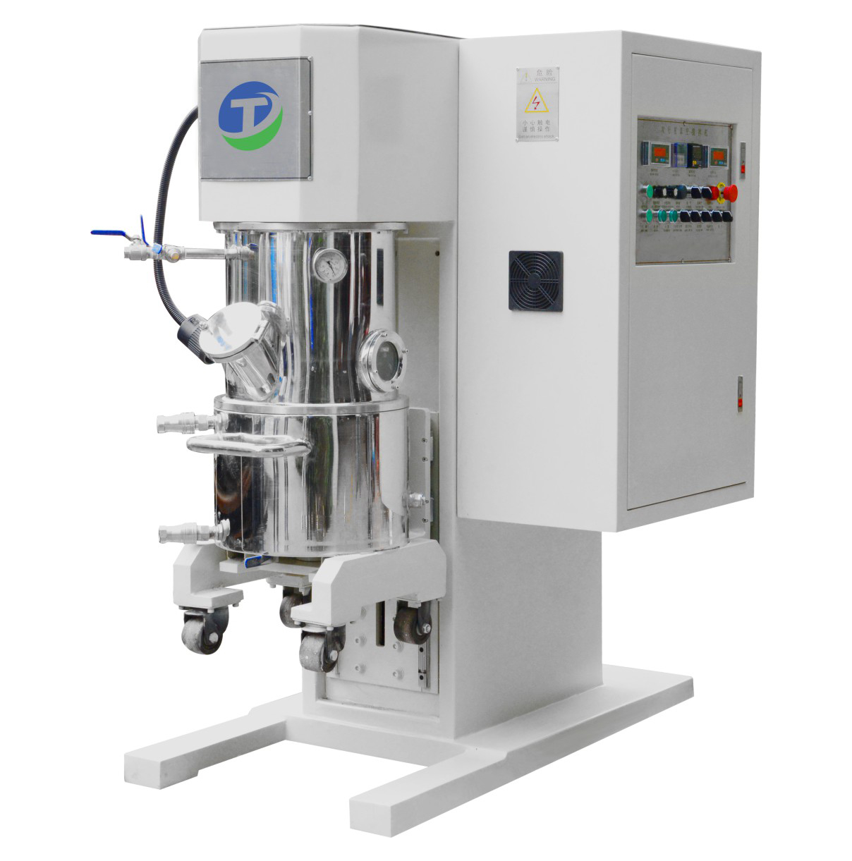 行星攪拌機(jī)通常有2個(gè)或3個(gè)多層折頁(yè)式槳葉,槳葉在公轉(zhuǎn)的同時(shí)也自轉(zhuǎn),使物料上下及四周流動(dòng),從而可在很短時(shí)間內(nèi)達(dá)到混合效果。 行星攪拌機(jī)